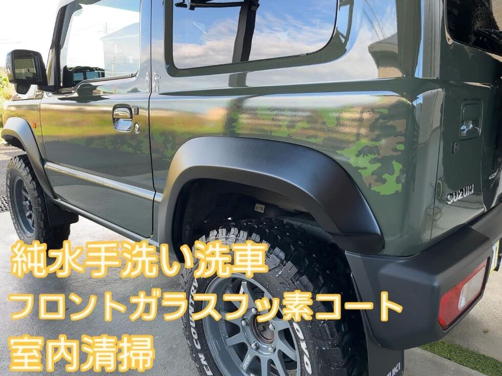 純水手洗い洗車&フロントガラスフッ素コーティング&室内清掃