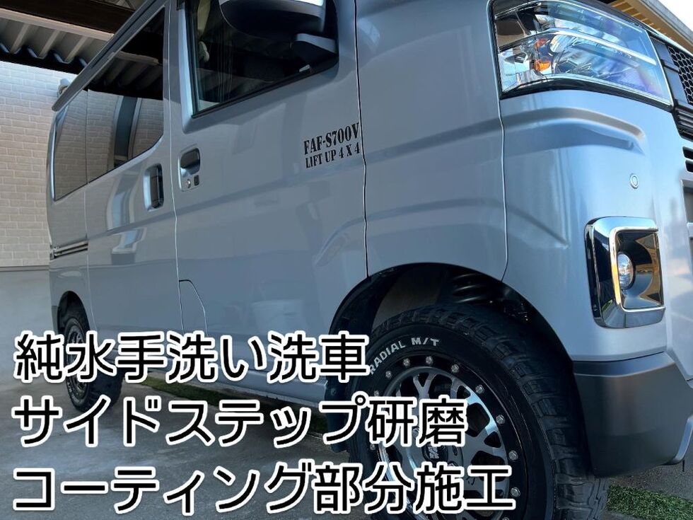 今回は、お車を引き取りに伺い純水手洗い洗車に加えサイドステップの研磨&部分コーティング施工のご依頼をいただきました。