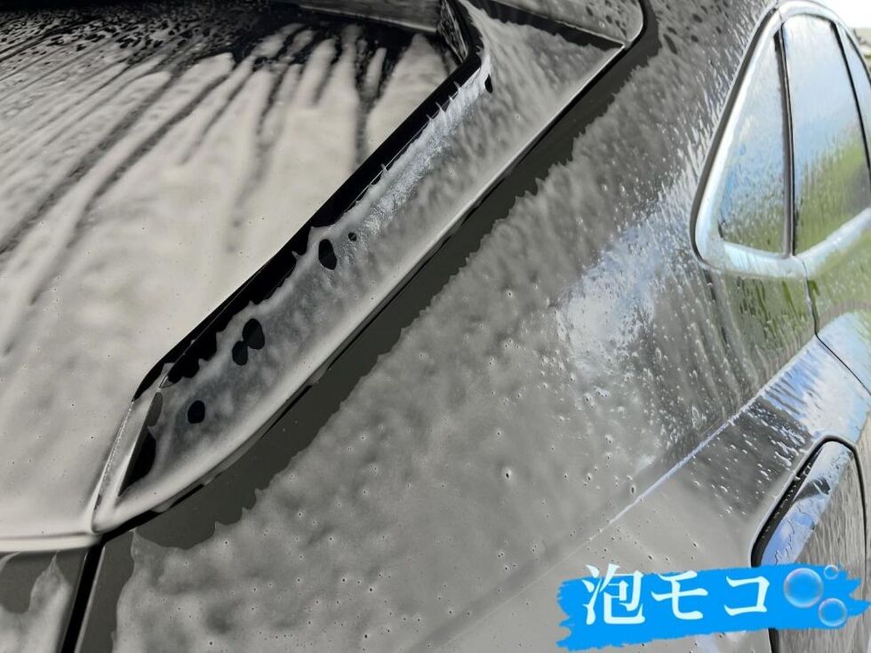 泡もこ洗車にてまずは汚れを落として落ちない汚れは専用のクリーナーを使用して除去します。