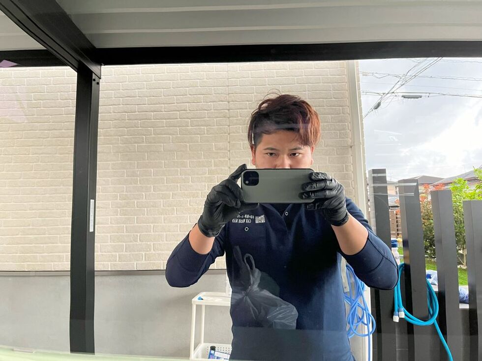 ガラスも汚れやウォータースポットを除去しコーティングしたらここまでツヤッツヤになり、自分の顔がくっきり写ってしまってます。ww